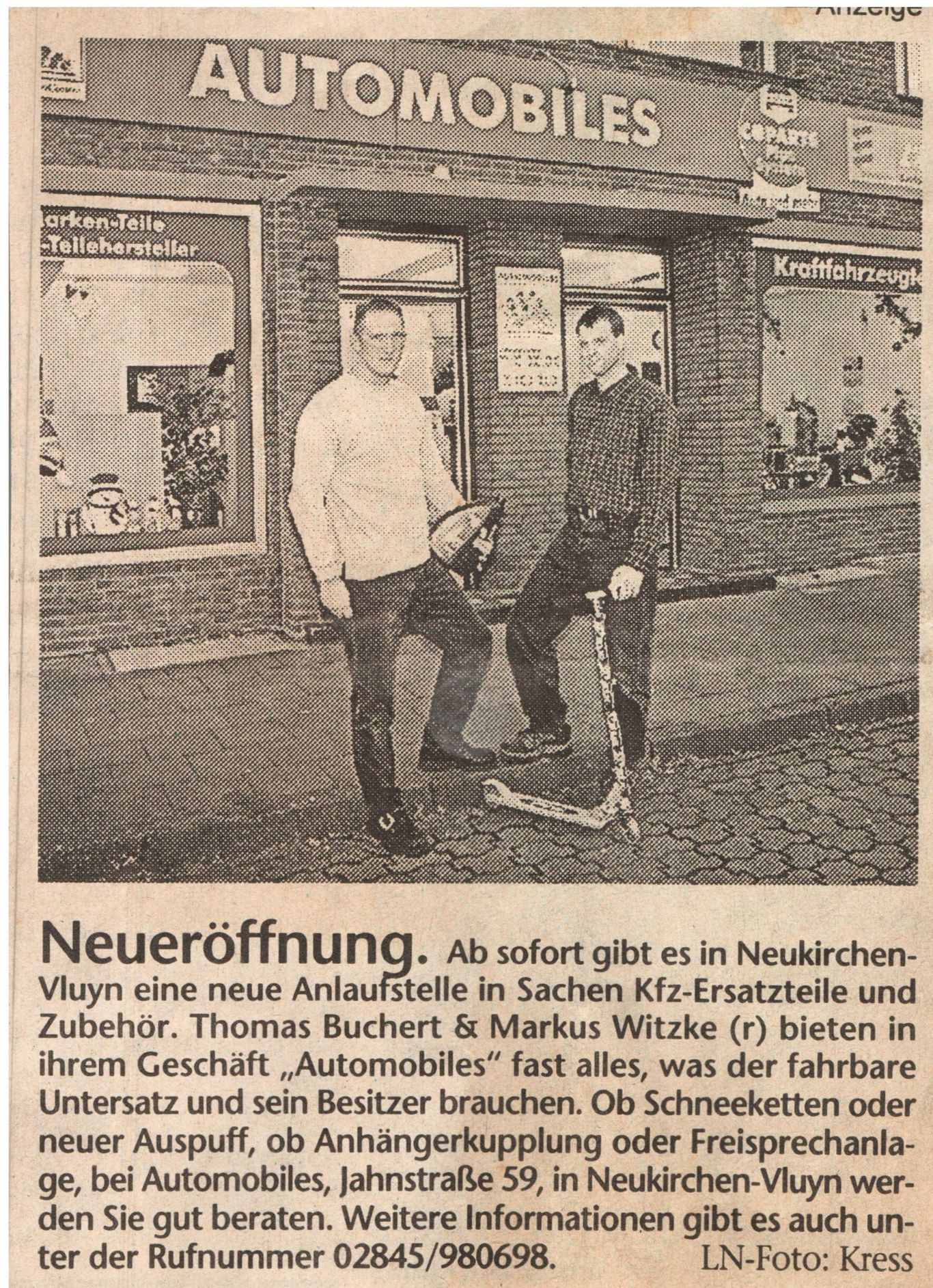 Wir, die Automobiles-ohg sind seit über 25 Jahren ein kundenorientiertes, dynamisches und flexibles Handelsunternehmen für Kraftfahrzeugteile , Werkzeug und Zubehör mit Sitz in Neukirchen-Vluyn .